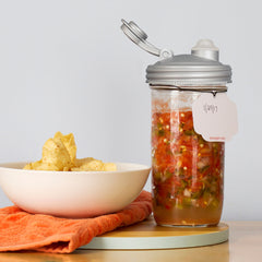 The reCAP® six-piece Fermentation System is a beginner-friendly kit that transforms wide-mouth Mason jars into an easy, waterless fermenting setup.