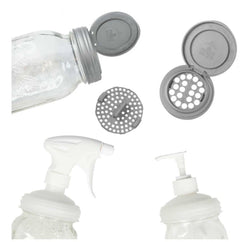 The reCAP® Multi-Lid Mason Jar Set transforms standard Mason jars into versatile, eco-friendly containers for food storage, cleaning, gardening, and more. Each set includes a Sprayer Lid, Pump Lid, two FLIP Lids, and two shaker inserts (small and large holes) to handle a variety of tasks.