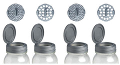 Fits regular and wide-mouth Mason jars; includes 4 FLIP lids, 2 shaker inserts with large holes, and 2 shaker inserts with small holes.