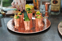 Solid copper, ideal for shooting, sipping or popping your favorite spirit. Chill these elegant tiny cups on ice to serve your fine spirits or take your time, hold your liquor, chat awhile, let the conductive properties of copper warm your favorite spirit to body temperature as you enjoy.