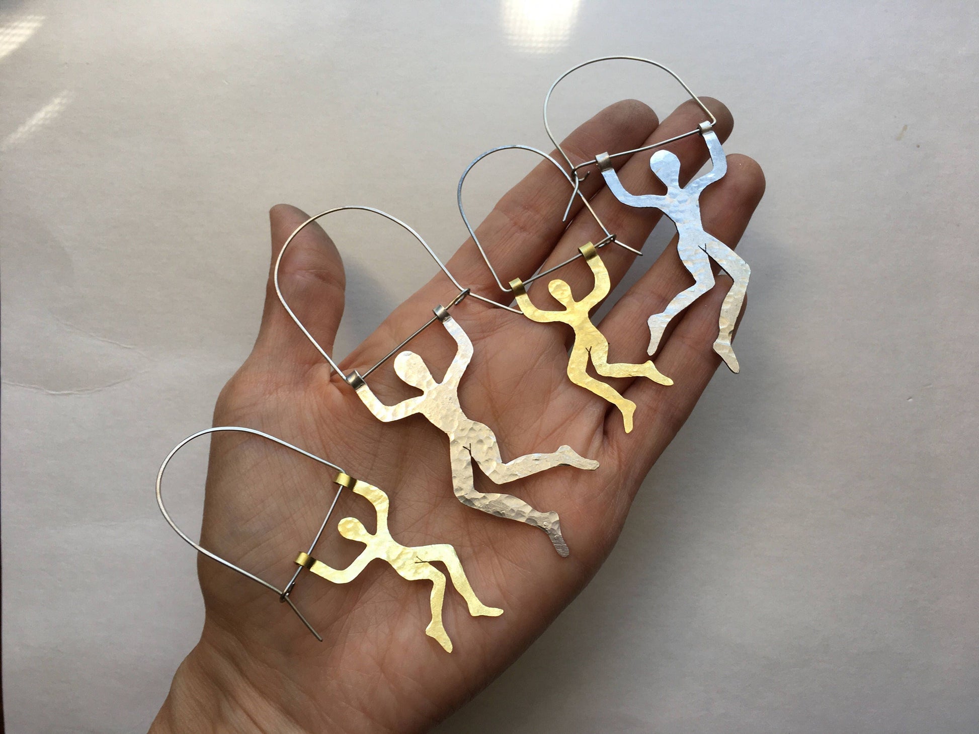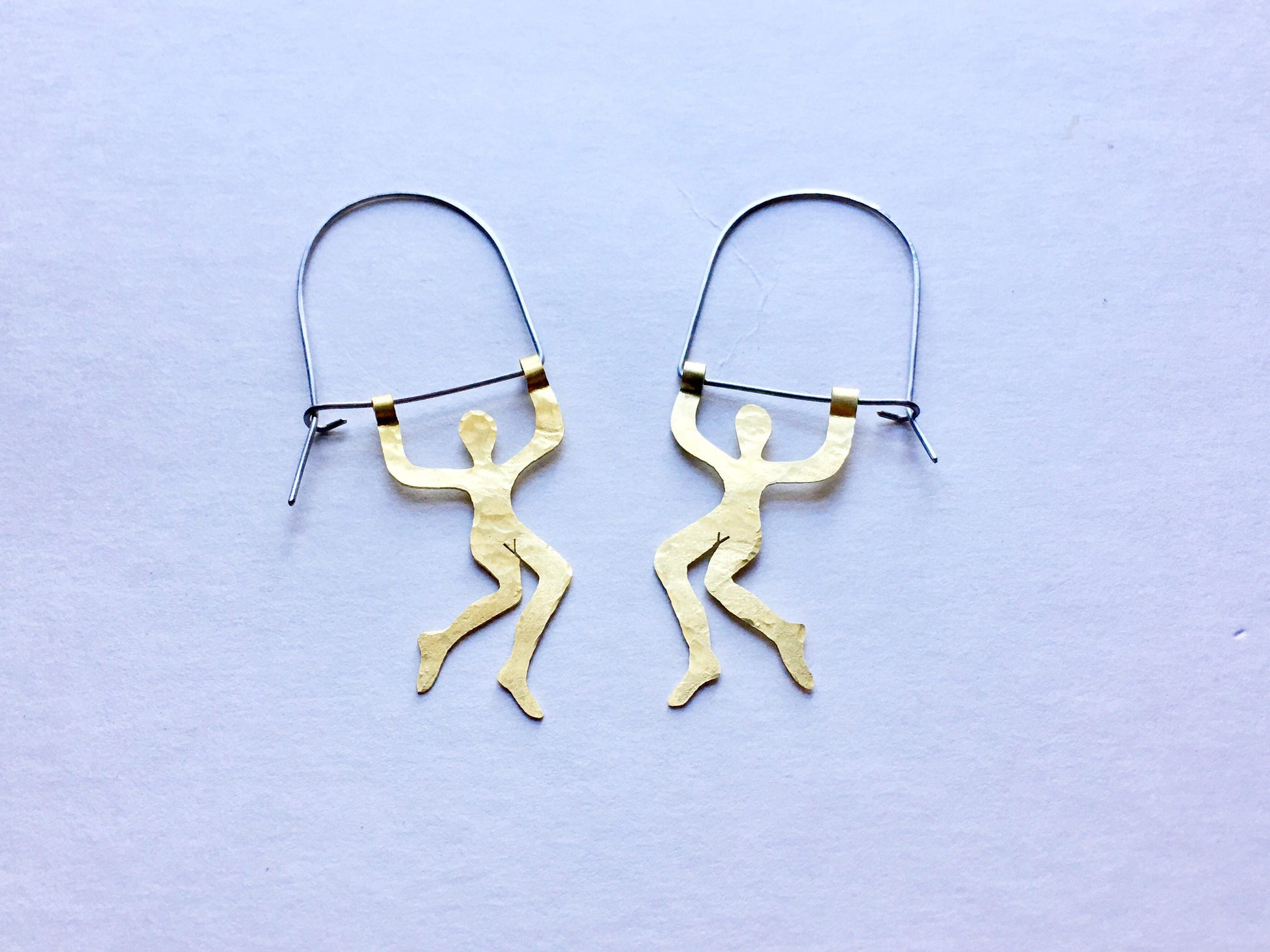 Bring a playful twist to your look with the Small Trapeze Artist Hoop Earrings by Adriana Soto. Inspired by the daring elegance of trapeze performers, these hand-cut metal earrings blend bold artistry with modern design. Lightweight and full of motion, they’re the perfect way to add whimsical sophistication to your everyday style.
