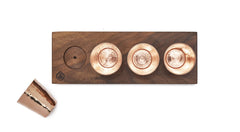 Part of the Supply collection, this flight board blends natural materials with modern design, emphasizing longevity and heirloom-quality craftsmanship. Each piece is unique, with distinctive wood variations and a copper finish that naturally patinas over time, making it a functional and collectible addition to any bar.