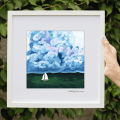 This gouache Stormy Green Seascape painting is by Texas-based artist Kelly Lenore, now available as a made-to-order fine art print on museum-quality matte paper with archival giclée ink.