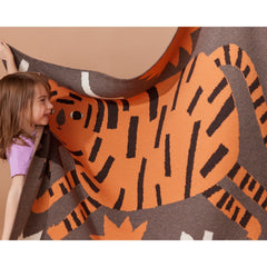 Wild, fun, and free Surprised Tiger by artist Aniek Bartels features a beautifully illustrated feline friend running through wildlife. Available in ultra-soft organic cotton and in luxurious extra-fine Merino wool that is squish soft and will not itch. Machine washable for easy care and cleanability. A perfect gift for a new born.