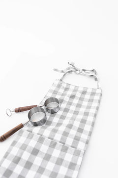 Simple and classic in design and pattern, The Checkered Apron features one large front pocket and ties at the neck and waist.