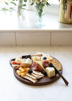 This round cutting board is both practical and beautiful. A perfect cheese tray, a beautiful serving board or a classy and well-made cutting board, this one covers all the bases. Made with native Pennsylvanian high-quality hardwoods.