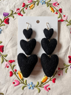 These Three Tiered Heart Felt Dangle Earrings add a charming touch of love to any outfit with their playful layered design. Crafted from 100% merino felt, they feature small, medium, and large hearts that create movement while remaining incredibly lightweight and comfortable to wear. Hypoallergenic findings make them suitable for sensitive ears.