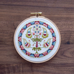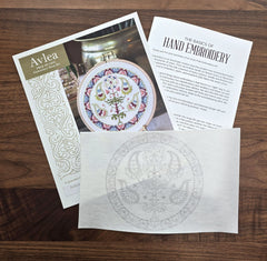 The Tree of Life stick-and-stitch embroidery design features a cypress tree motif inspired by Persian, Roman, and Greek art. Historically a symbol of mourning, the motif evolved in Christian art to represent eternal life. This kit allows you to stitch the design onto your chosen fabric, creating a meaningful and timeless piece of embroidery.