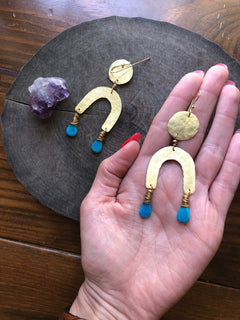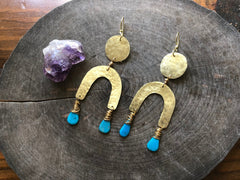 Turquoise & Brass Arc Earrings