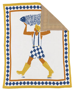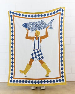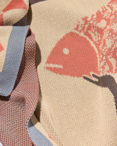 Bring coastal charm home with the Alice Des “Fisherman & Poetic Fish” Knit Blanket, featuring her witty, minimalist seaside illustration.