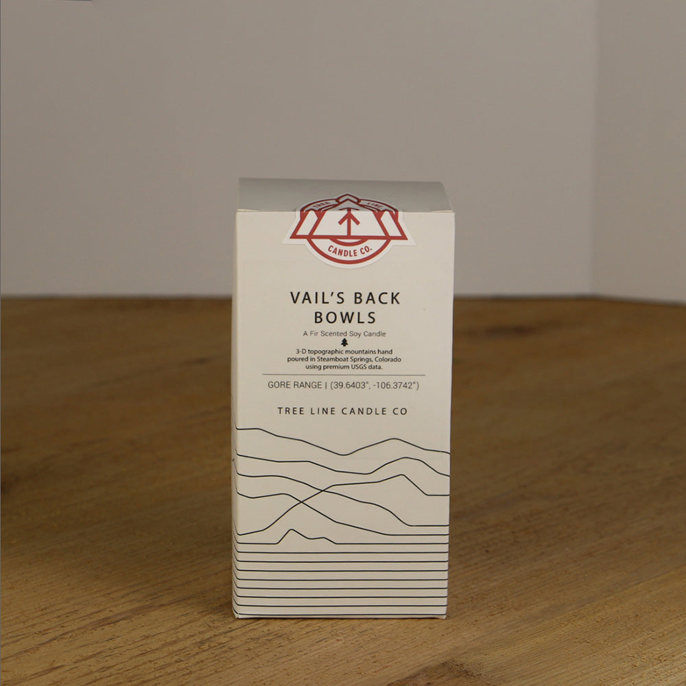 Bring home the spirit of Colorado’s iconic slopes with Tree Line Candle Co Vail’s Back Bowls Candle, featuring a topographically accurate 3D wax mountain peak crafted from real elevation data.