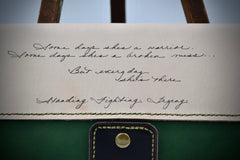 Wrapped in a hand-painted cover and finished with a handwritten quote, each journal is a quiet companion. Made from sustainably sourced leather and 90 lb watercolor paper, they’re a sanctuary for handwriting, sketching, and visual storytelling.