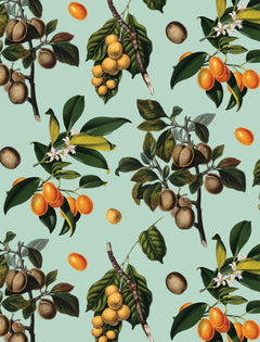 Vintage Orchard Wallpaper, robin egg