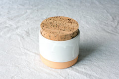 These beautiful hand thrown Salt Jars are made from rich clay and hand trimmed. Fitted with a natural cork top. Made from Texas stoneware.