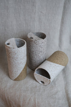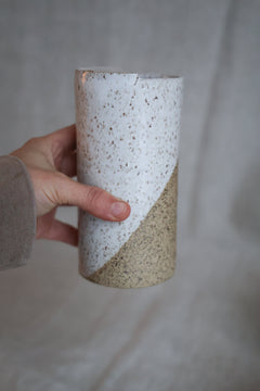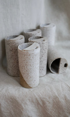 A daily essential, thoughtfully made. This white speckled to-go cup pairs a clean, minimal glaze with the warmth of natural clay—creating a piece that feels both simple and grounding.