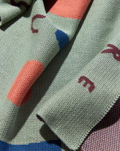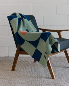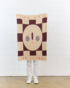Spread positivity with the Rosie Caitlin Smiley Affirmation Knit Blanket, featuring her iconic smiley and repeating affirmation text.